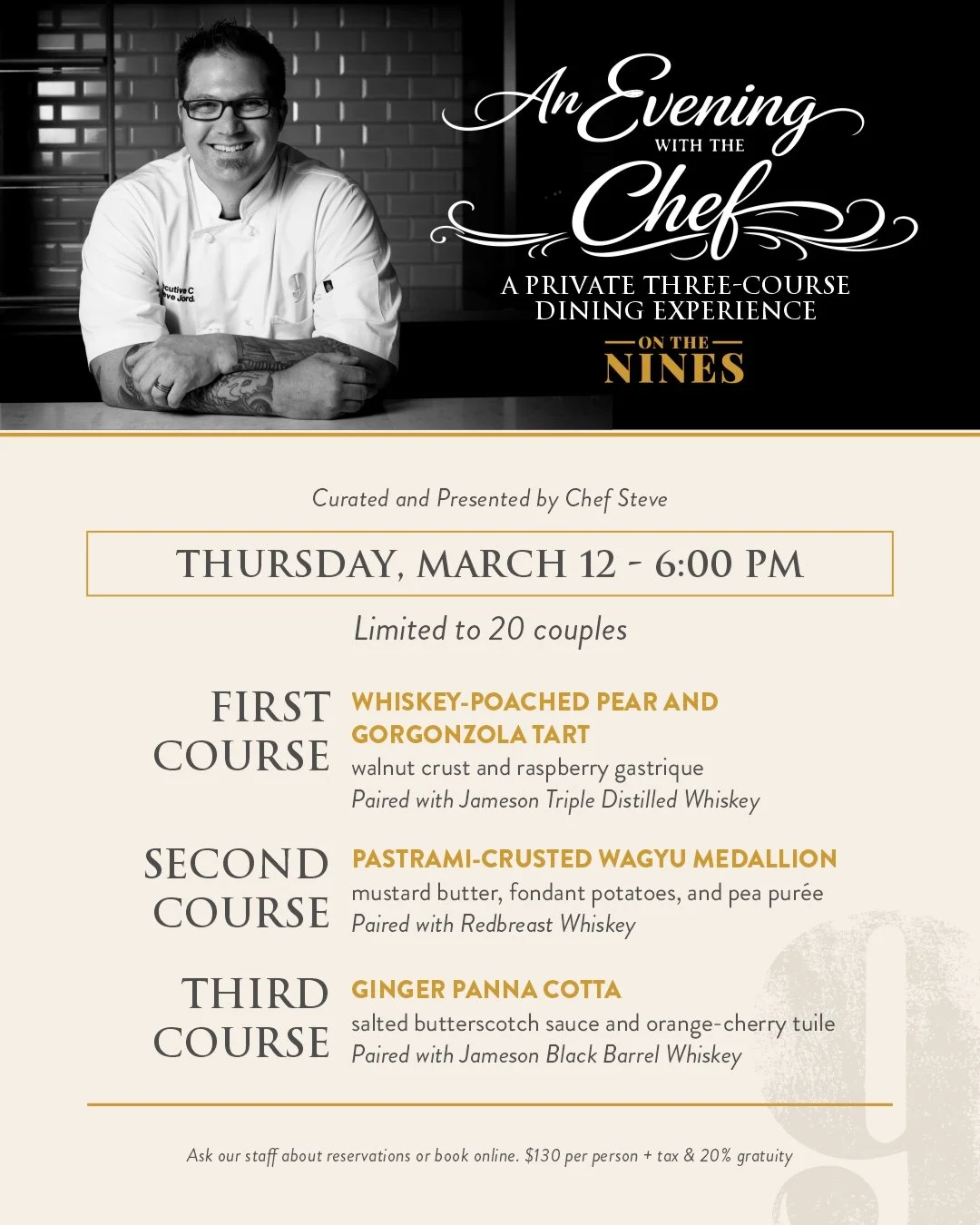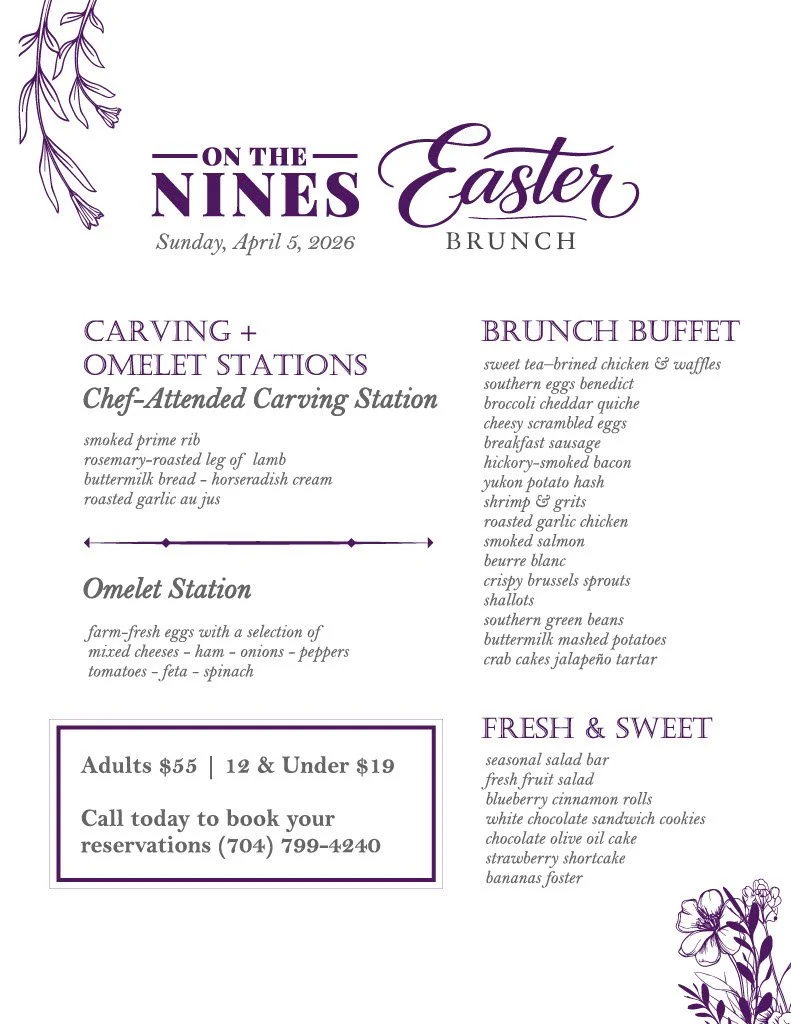 On The Nines is Chef Steve Jordan’s Euro-inspired bistro featuring seasonal dishes, craft cocktails, and expertly curated wines served with southern flair & hospitality. We’re located at the Mooresville Golf Course
