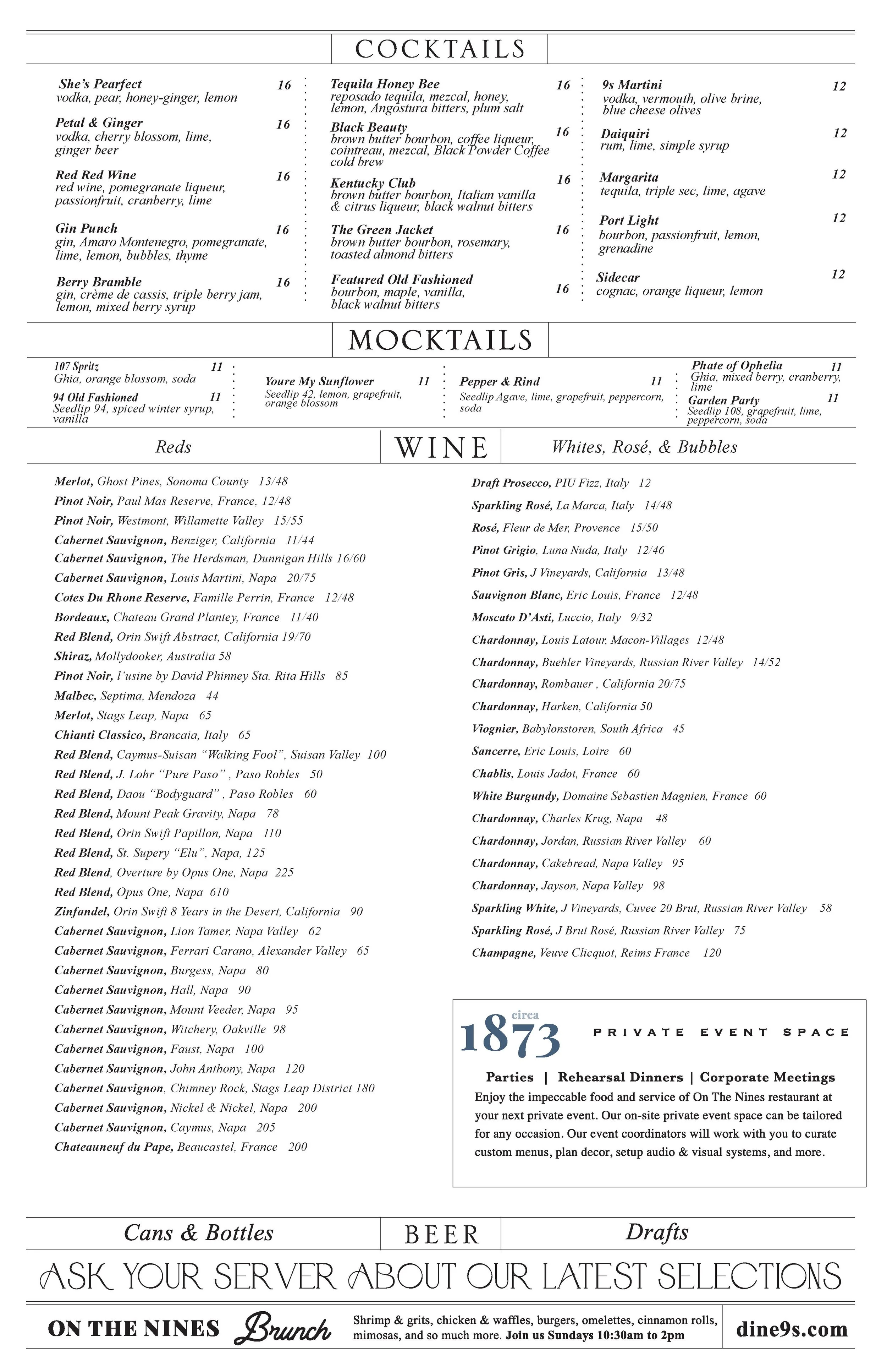 On The Nines Bistro Menu